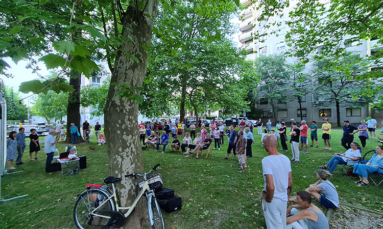 A very important part of the whole effort for the structural consolidation of buildings is also informing their apartment owners. On this year's first summer day, June 21 2021, in the park in front of the buildings, we had a presentation of the study. According to our estimates, the presentation was attended by about one sixth of all residents of these high-rises. The event was moderated by Maja Ivanic, the introductory speech was given by Slovenian former health minister, a resident of one of the high-rises, Dušan Keber, and the study was presented by its co-authors Marjana Lutman (ZAG) and Toma Kristof. |