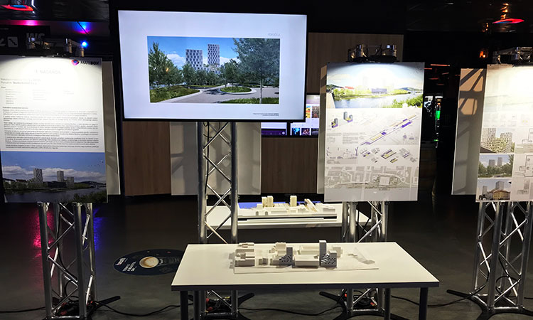 In the lobby of the Maribox cinema center, the opening of the exhibition of the works of the competition for the commercial and residential complex Maribox, where we received the first prize, was held. |