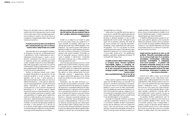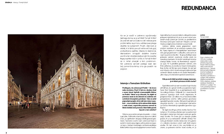 Pro Bauhaus, strokovna revija za gradbeništvo, arhitekturo, urbanizem, interjer ter dizajn, je objavila daljši intervju s Tomažem Krištofom. Naslovn intervjuja je Redundanca, tema pa prenove modernističnih stavb v Sloveniji.