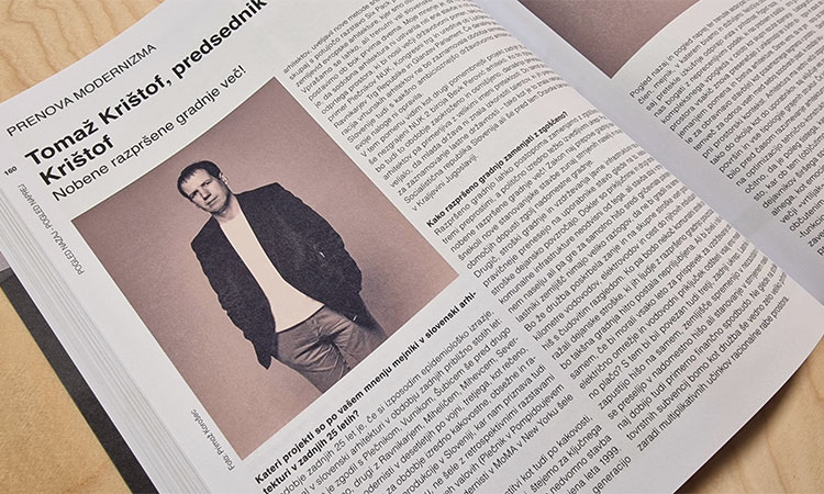 Hiše (Houses) magazine published a special issue of Hiše 25, in which it marked 25 years of its existence with columns by 50 most prominent Slovenian architects who answered questions about the past and future of Slovenian architecture.