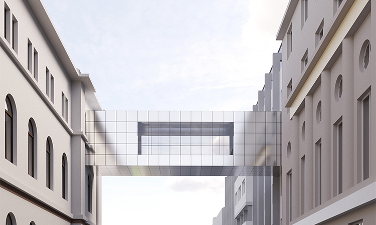 The bridge connects the buildings of the Government and of the President of the Republic of Slovenia on Gregorčičeva street in Ljubljana. The bridge replaces the planned underground passage between both buildings, for which we made a project a few years ago, but it was never realized. |