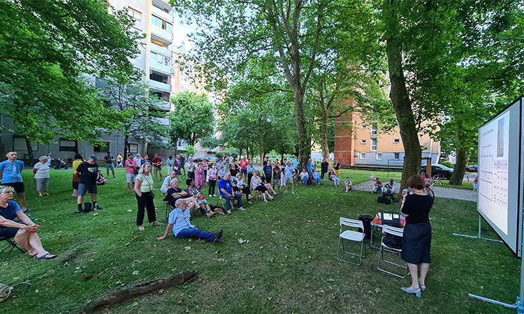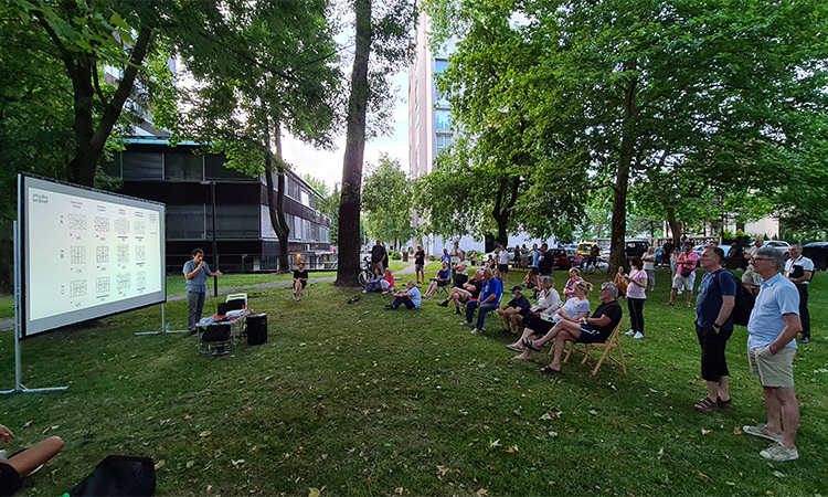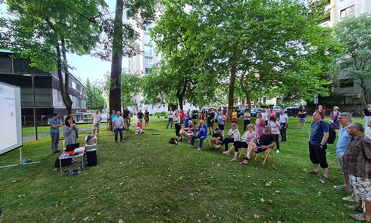 A very important part of the whole effort for the structural consolidation of buildings is also informing their apartment owners. On this year's first summer day, June 21 2021, in the park in front of the buildings, we had a presentation of the study. According to our estimates, the presentation was attended by about one sixth of all residents of these high-rises. The event was moderated by Maja Ivanic, the introductory speech was given by Slovenian former health minister, a resident of one of the high-rises, Dušan Keber, and the study was presented by its co-authors Marjana Lutman (ZAG) and Toma Kristof. |