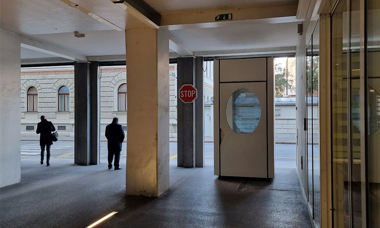 The first of five guardhouses was erected on Gregorčičeva Street in front of the Government of the Republic of Slovenia building in Ljubljana.